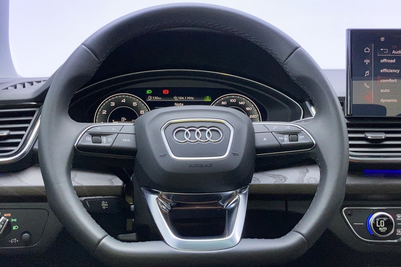 - Leather-wrapped multi-function sports steering wheel, 3-spoke, flat-bottomed